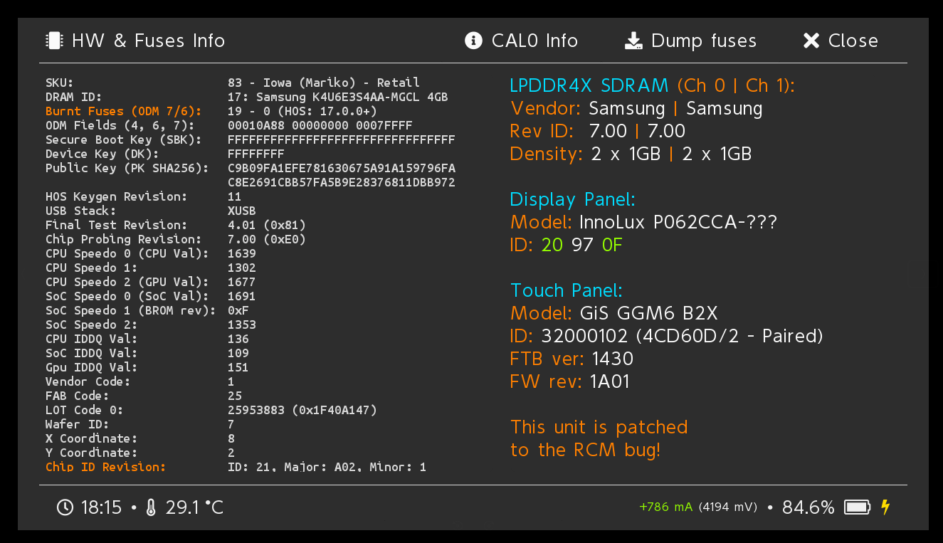 可以先通过右上角的 Console Info 查看一些设备信息,例如 HW & Fuses 查看 SKU 型号和 Burnt Fuses 的熔断数